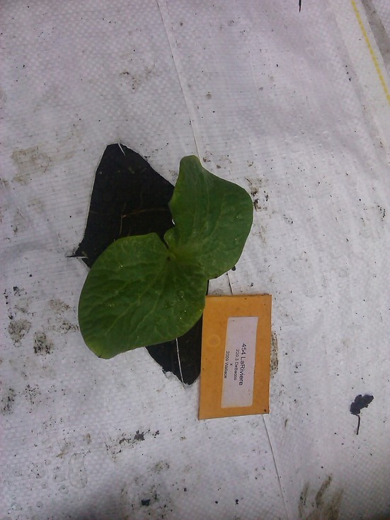 454 LA riviere is looking good after germination.glad I am growing on covered row mounds with all the rain yesterday& next couple days.no weeds.no mud,no dirt splatter,no root soak& dry vines.all I got a do is cut a slit for roots& train vines on mounds.