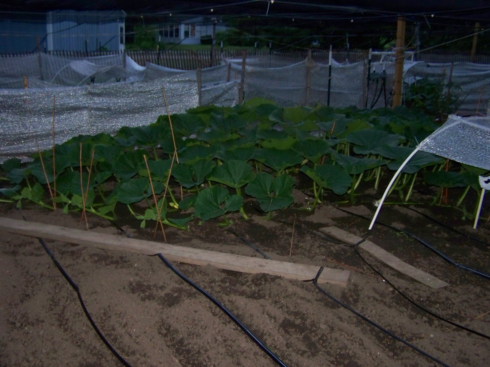 This is what happens when you have too much N and try to make the S curve to fast. A cracked main required us to cut back the the next side vine and turn it around for the new main. Thankfully, we had only cut two tertiaries on that vine and it has a pumpkin that is about 12 ft from the stump. We will let the rear sides sweep forward a little more before we terminate to try and get a little more plant behind the pumpkin and hopefully this side will pick up where the main left off. I'm n ot worried, the plant has been amazing so far, all I have to do is quit screwing it up.