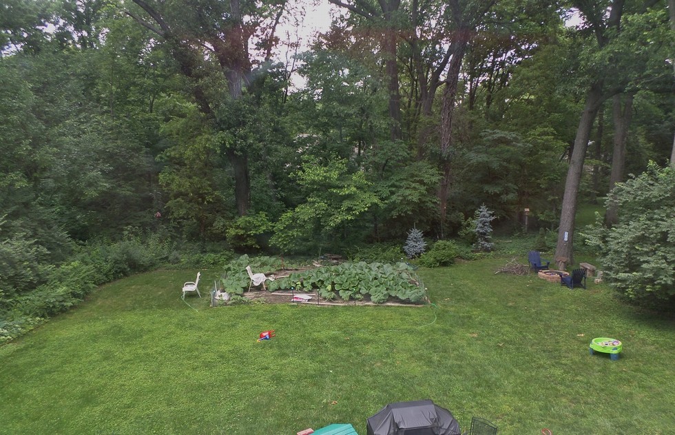 Patch almost filled in. Trees in the front yard are bigger an older... slowly getting less light each year but the plants keep growing. I think my limit will be 500 pounds in a yard like this.