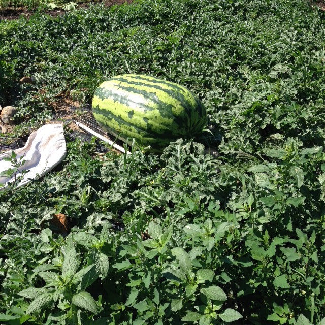 This is my 297 Kent x Self and is the biggest melon in the patch....but also the oldest. I am down to three melon plants due to losing both of my grafted plants. This one has a 81" CC and is growing nicely again. We had three cold days that brought this one to a screeching halt but it has now found a higher gear. Nothing near what it had been growing at before it slowed but still on pace to be a personal best of me.