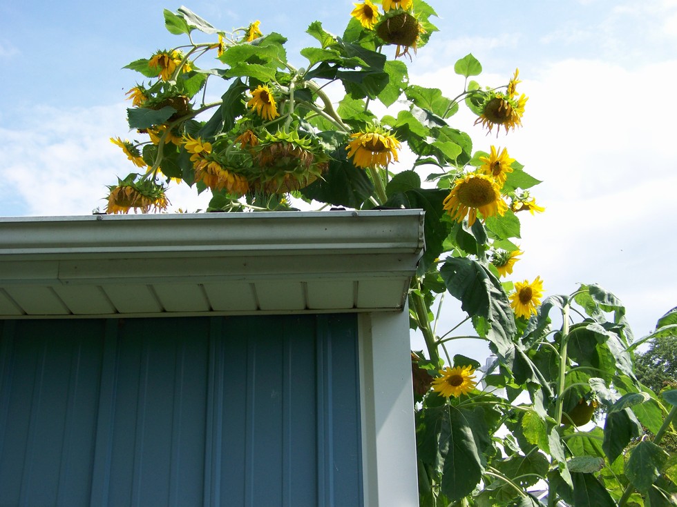 craziest sunflower I have ever seen a big head and a bunch of little ones