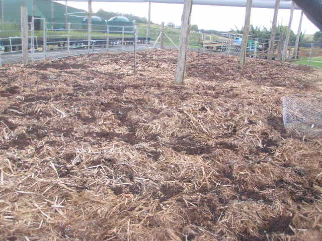 remulched the beds yesterday put1 round bale of old soya bean on each bed except one as it had an extra bale of rice straw then put old partly rotted sugar cane over it all and then shovelled some composted material being chicken manure mixed with green waste from the tip over the top but only alight dressing