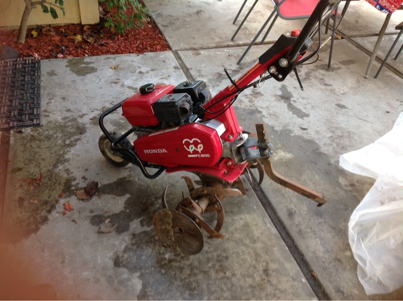 Here's my new Honda Tiller, FC600. This tiller is the perfect size for my patch. It was a Christmas Present from my wife. Used, but runs like a top!