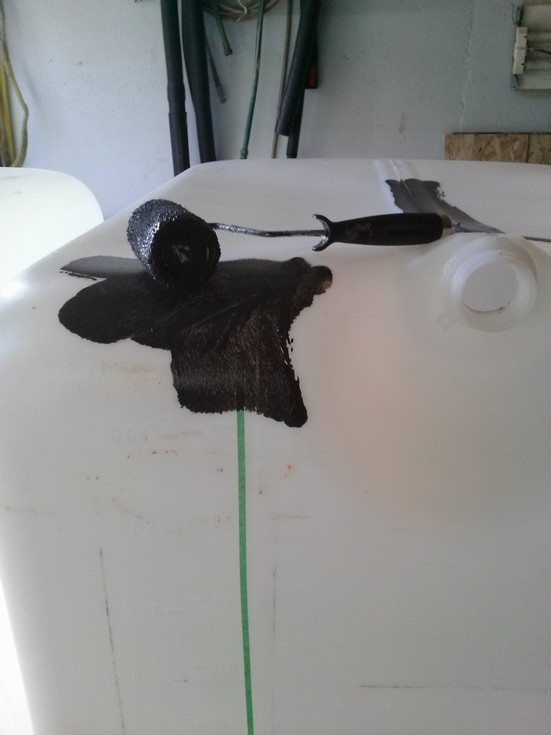 started painting the totes.I used 1/4 tape so I could see the water level.