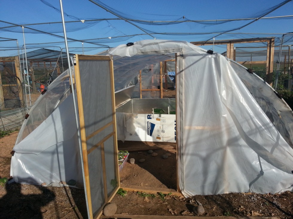 77f today....gonna be a warmup.....had doors on both ends wide open and it was still 85f and a bit of flagging. Unclipped along the end frames and opened the sides more, 77f in there after a quick leaf spray.....