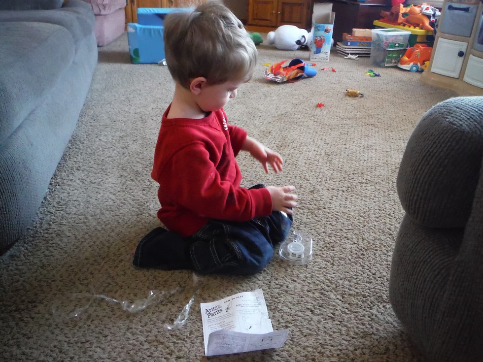 I found him trying to fix his paper he tore.