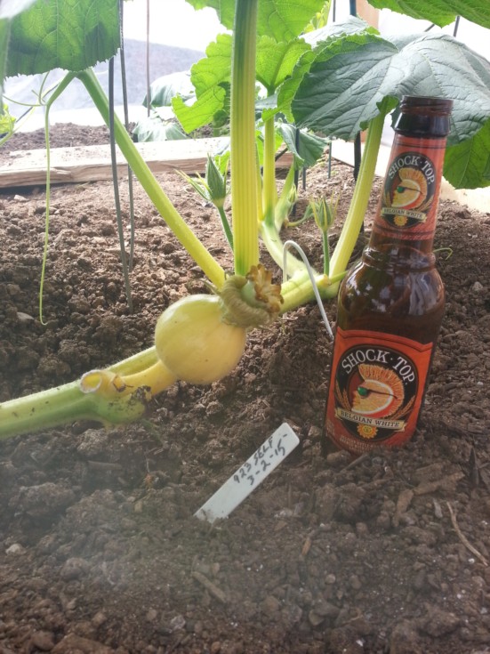 For lack of a smaller comparison model, the ol' beer bottle gets called into service early....here's the 923 this morning.