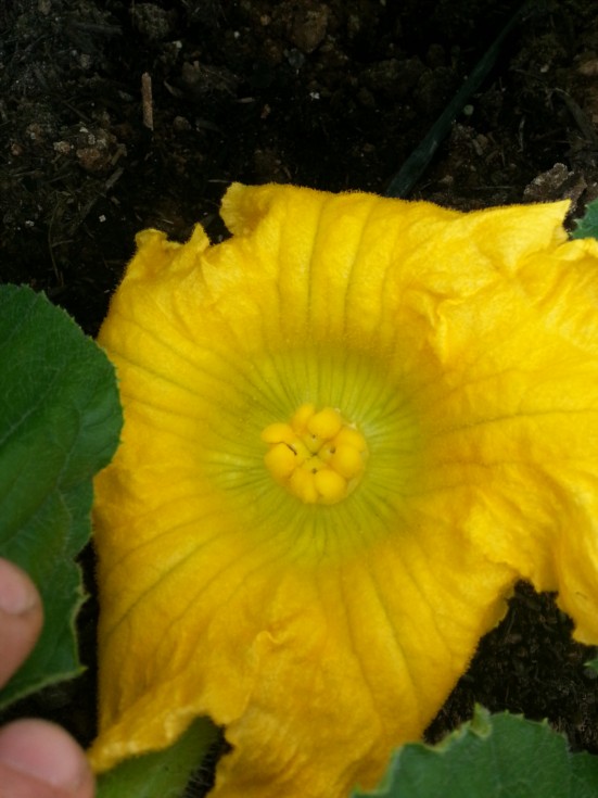 One of the 1622 secondary blossoms....I caught a big whiff of perfume when I pollitated it.....never get tired of these big golden blooms every morning!