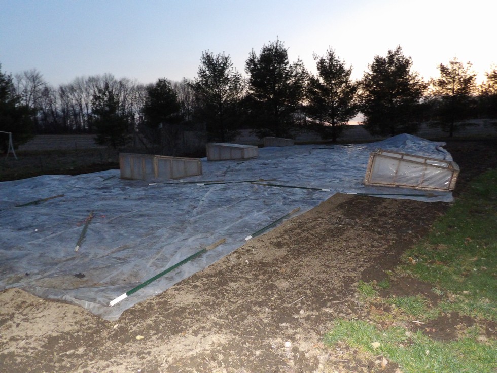 Patch is almost dry enough to till and 6 out of the next 9 days predicting rain. Plastic deployed to shed water...