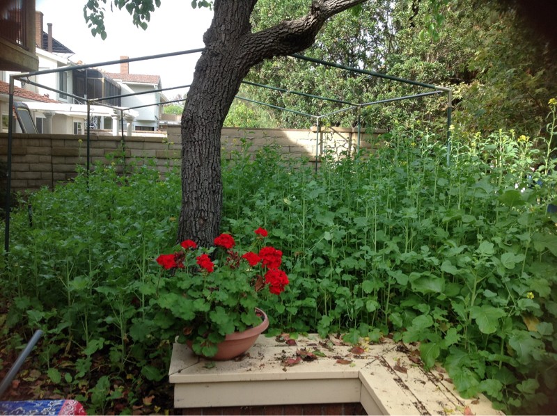 The mustard cover crop 3 weeks ago. Its been cut, chopped and tilled in and the patch has a layer of clear plastic on it. Not only are the gasses fumigating the soil, but its been pretty hot here and the plastic raising the heat will kill the grubs off. That's a win-win eh?