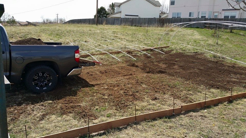 Dairy compost went over the whole patch. Then 2.5 yards per 10' of house. Was only able to get 2 loads in today as I had to go get some Humic from the RMGVC.