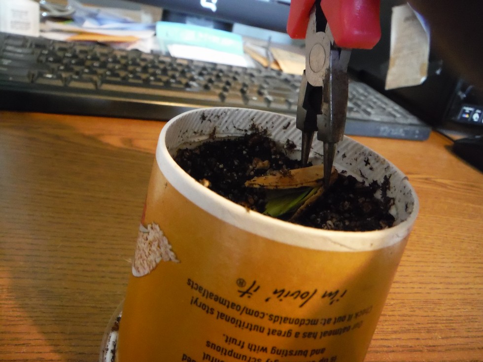 Calling Dr Bubba do the surgical room.I like to remove the shells if I feel they have been on to long.If not you will rot the cots.Do not try this at home I am a professional.These had been on quite a while as they popped a root in the cool 65 degree basement,unattended.