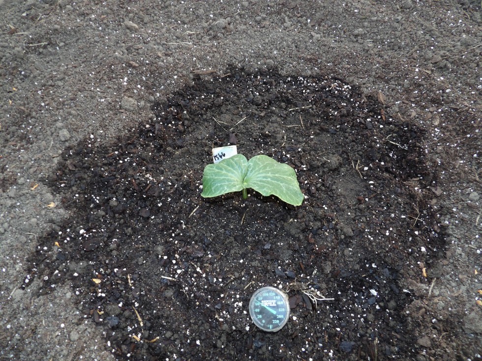 The 1566 Rodonis is kind of getting the raw deal. It sprouted 2 days later than the others and went into the patch without heat cables. The soil is 70 degrees, versus 80 in the other huts. I still think this one has what it takes to get 'r done. Time will tell.