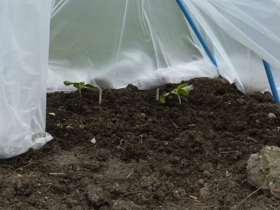 Both 1528s planted in my reconstructed mini tunnel. After last week's winds I gave up and just collapsed it until today. I think my new allotment catches a LOT of wind....