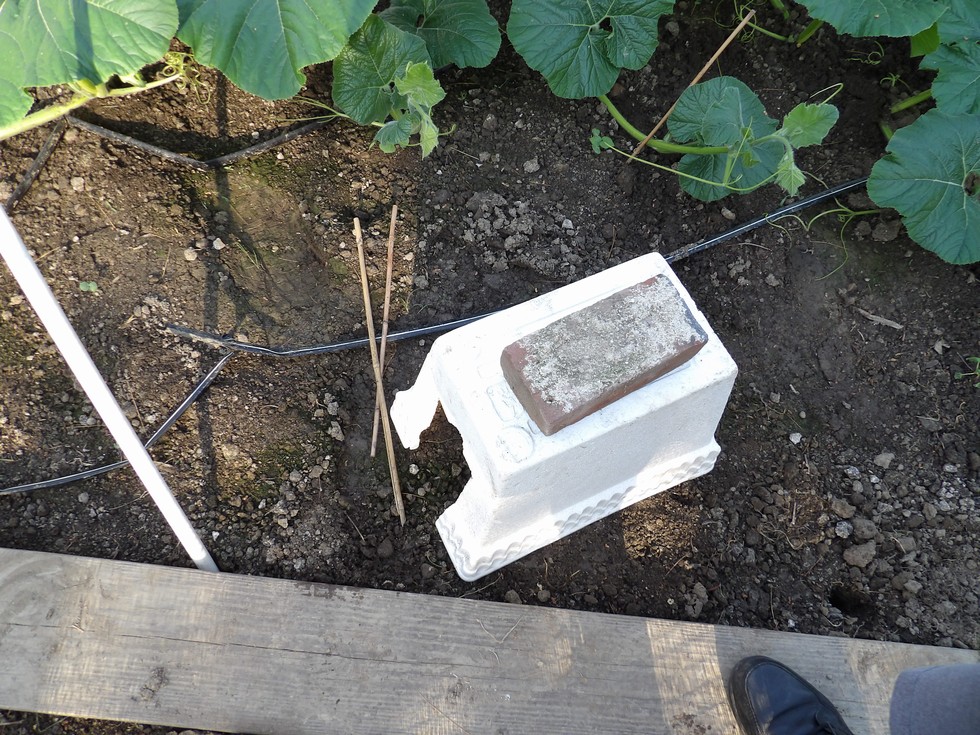 And since I mentioned it's going to be the hottest day of the year so far on pollination day. This is how we battle that. A Styrofoam cooler upside down over the pollination and on days over 95, a frozen Gatorade bottle of ice inside the cooler (careful not to get the ice to close to the baby).