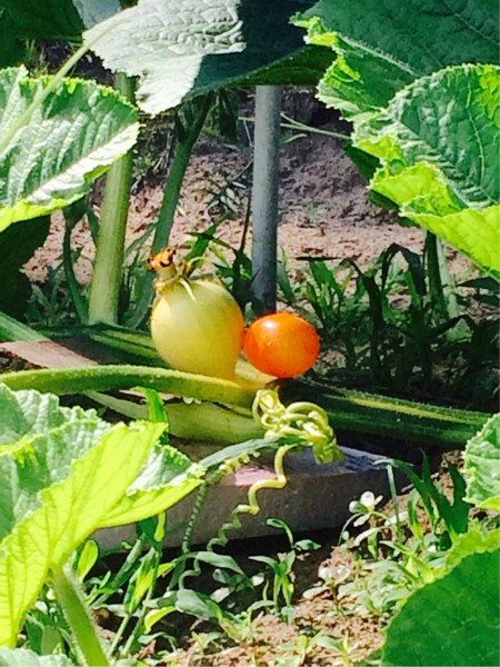 635 7 dap. This was a teeny tiny little flower and pumpkin on a huge vine thick leaves nice looking plant