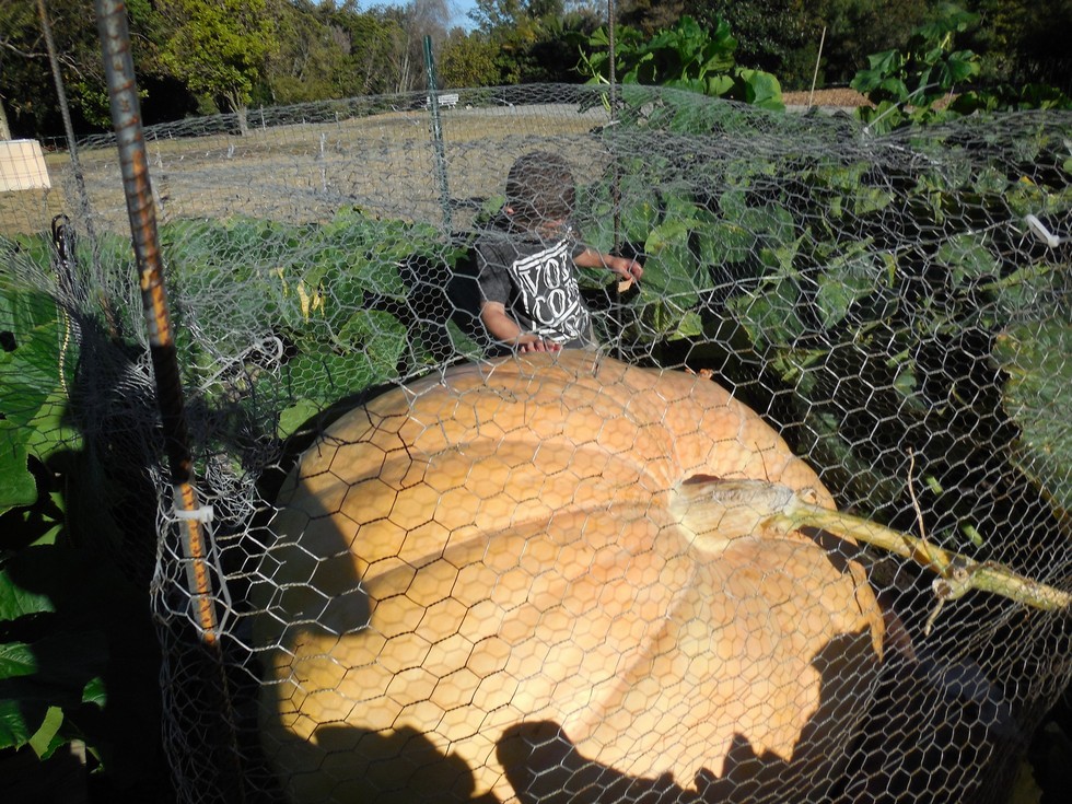 I built a 5' X 6' foot critter cage because of the all the pumpkin eating animals at this location. The only reason I made it this big was because the plywood I had was already cut. I had no idea I would actually need something this large and if things continue the way they are,,,, I will be building a bigger one. Kingston's worked his way in for a picture.