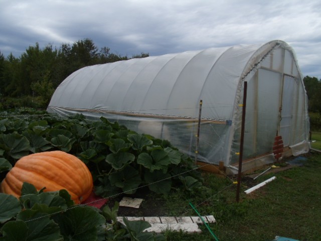 I decided to beat the weather I needed a greenhouse. I built an 18x30 high tunnel. Now I can garden in the cold and rain. This involves a whole new learning curve, but it�s worth it. I set my goals at 500lbs. for outside pumpkin and 750 lbs. for inside one.