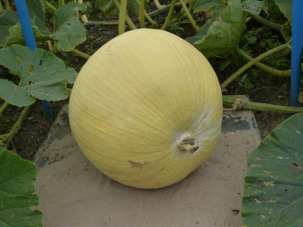 So on our return from holiday, I went to visit the patch today. This is the largest/oldest so far at DAP 36 on a side vine...and it looks like she has started to rot around the blossom end. The white areas feel quite soft to the touch. I haven't removed her from the plant yet in case I'm wrong.