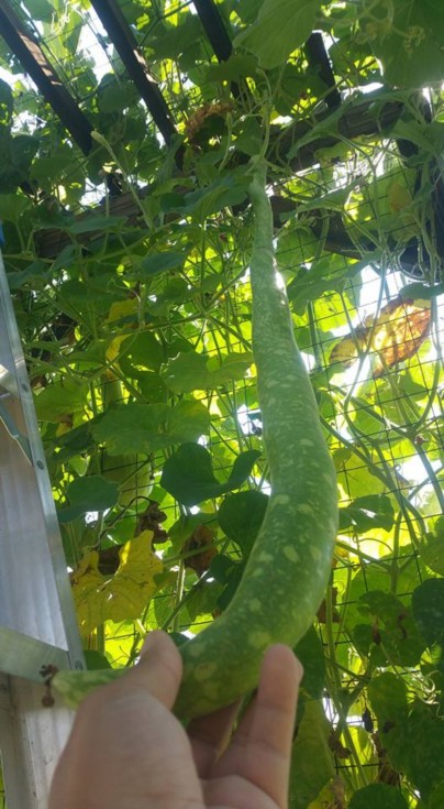 Long gourds are almost 5' long. This one has a real nice snow flake look to it.