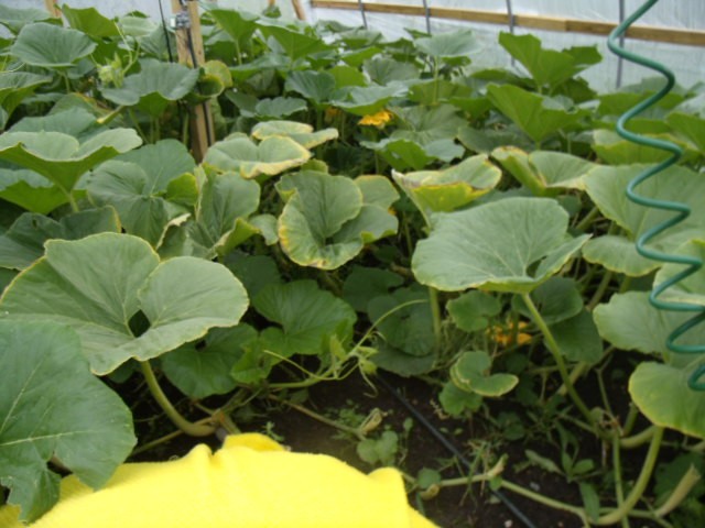 I removed the badly infected leaves. They seem to be moving from the pumpkin back. The pumpkin has pretty much stopped growing.