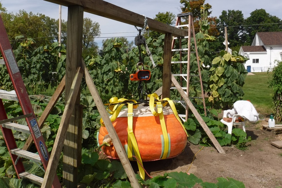 I did weigh my pumpkins.Ya dont want to take a knife to a gun fight.lol This is the 1947.5 Clementz.(4% heavy)I donated it to a nature center.They have busloads of kids all season long coming through.