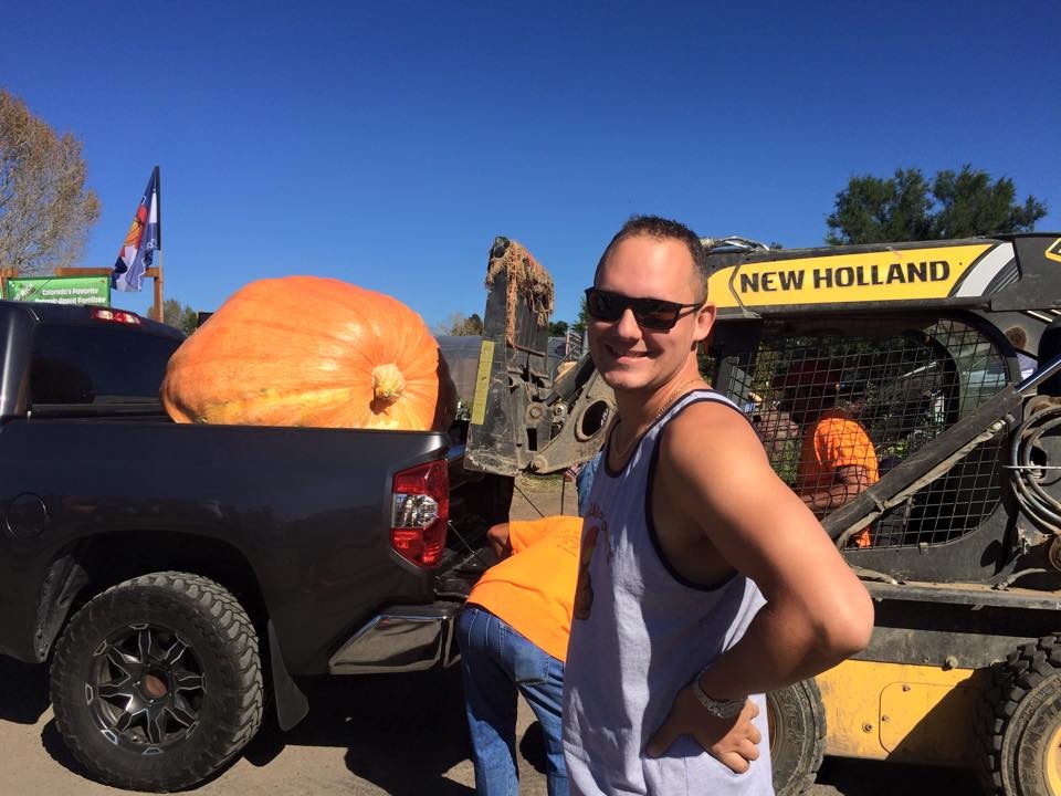 Jareds weigh off - 4th place pumpkin Est : 1025 Weight came in at 925 pounds. Not bad!