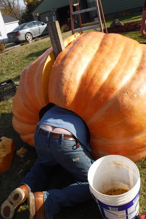 Not wanting to be a wisecrack! BuTT! The Birdman & his bride thought this was pretty funny.Bubba getting the seeds out.Yes I do plumbing on the side.LOL If you would like seeds from this years Kins or Squash/Long Gourd. They all had a good seed count.You can have the seed of your choice with your WWGG membership opening Dec 1st.We will open membership & ship much earlier this year as things are rolling well.Will post 2015 winners next week a little each day.Thank Ya Very Mulch!!