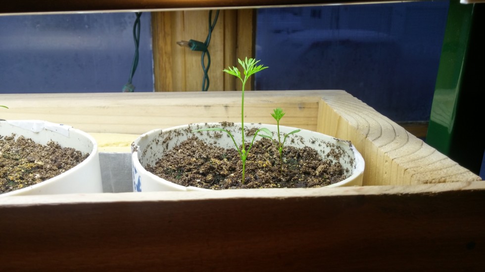 This is y we plant at least 2 carrots per pipe. The one is way farther ahead of the other. This is the difference between a 4 lb carrot or a 8 lb plus carrot even this early on. One pipe had 3 duds that were way behind so I started more to replace them.