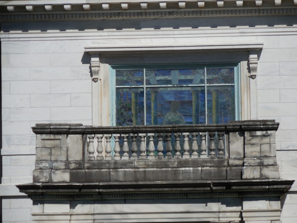The stained glass window.