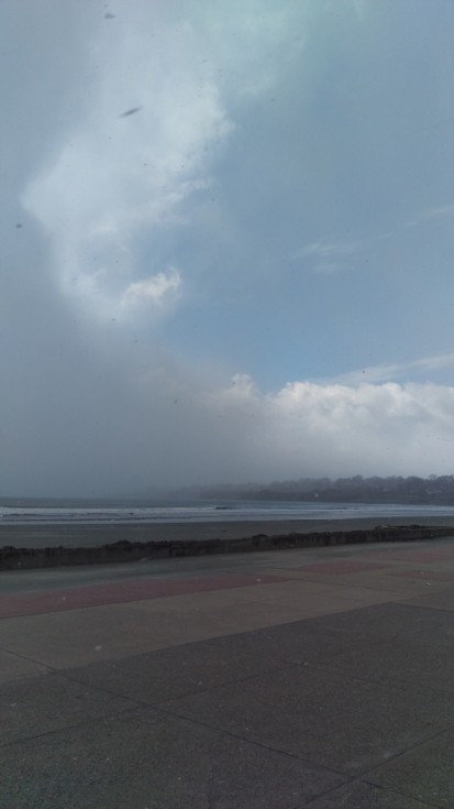 A view from the beach snack bar. Snow squalls over Newport's cliff walk. Repurposing the nacho warmer for a few weeks....