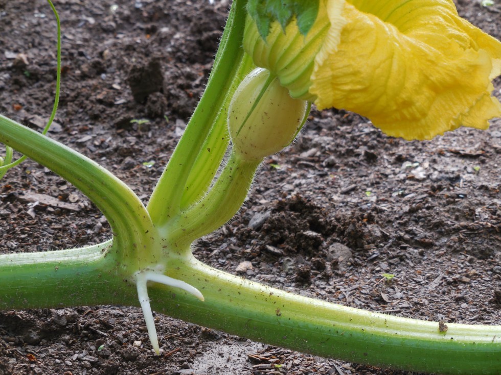 1781 Zywiec. I am zero for 3 on pollination attempts on the main vine of this plant. Maybe today will "take" and if not there is another little pumpkin right past this one.