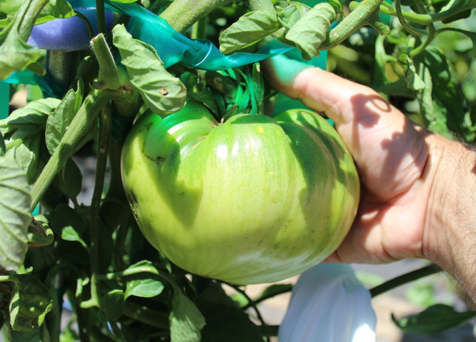 This is a Russian Oxheart heirloom. The person who gave me the seed happens to be Russian and brought it over a couple of years ago. Her family over there has been growing this seed for years. They make sauces from this variety. I thought I would start some for eating, but since I can't seem to grow a normal garden any more, I thought I would try to grow some big one's. The plant is very vigorous and a heavy, early producer. After I started this one I trimmed the plant back. The parent tomato last year was 1.93 lbs. Would be happy with a 2-3lber.