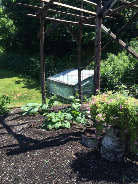 If I didn't mention it before, we are trying for the master gardener award this year...pear gourd in the back, long gourd in front....i may have mixed up long gourd w field pumpkin ...yea.. I'm the dummy growin field pumpkins on a trellis ...have to go check the fields for the long gourds...this should be fun