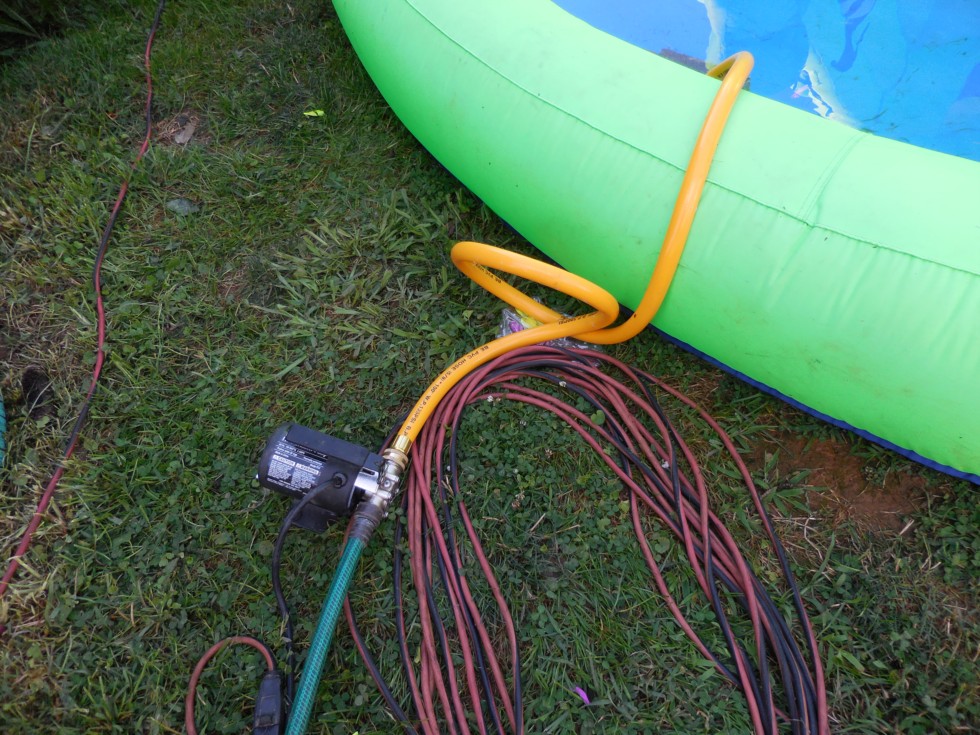 And when the kids are finished, we get the handy-dandy little portable Wal-Mart pump out and empty the pool on the garden. It was 92 degrees that day and I'm sure the garden thanked me.