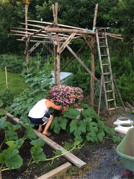 Had to raise the flower pot that was getting taken over by the field pumpkin...whimpy plant is almost terminated...
