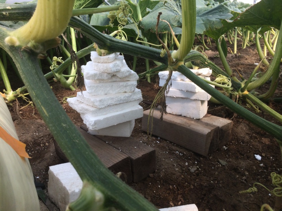 On a serious note,,, a wise grower saw how my main was positioned to my fruit last year and said I needed a lot of work. He taught me how to keep the stem straight with a very gradual slop aiming right down the main vine. It keeps the fluids flowing to the fruit and takes almost all the presume off the stem. A peice each week as she grows did the job well this year.