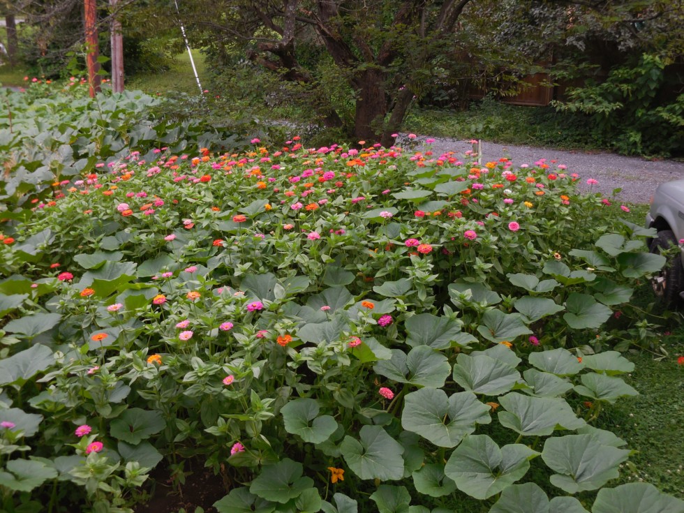 Zinnia's starting to fill in. I think the pink and orange color scheme is stunning. Pretty cool how the colors change from year to year. If I recall correctly, the colors last time had a lot of purple's and reds.