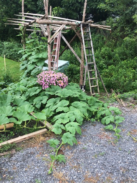 Oh boy...day 25 for the pumpkins...measuring day..the gardens are thumping..I have a feeling the late night strolls under the "long gourd" trellis are gonna be a no go soon....dang field pumpkin..."you should be in a field!!"
