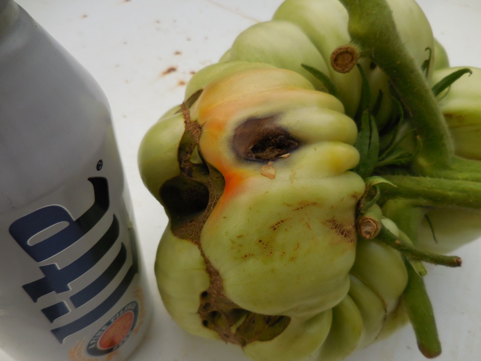 Saw some color on the big tomato today and discovered a bad spot starting.