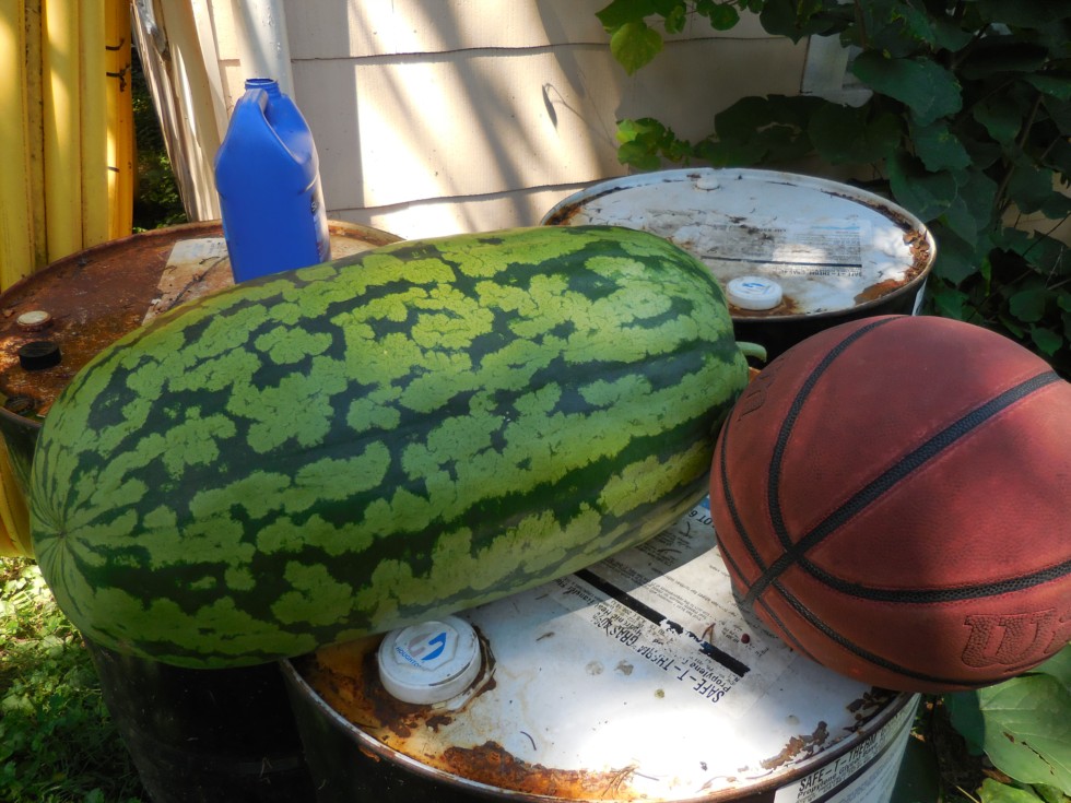 Cull from melon plant #2. We are down to one melon now. We picked the younger one to keep.