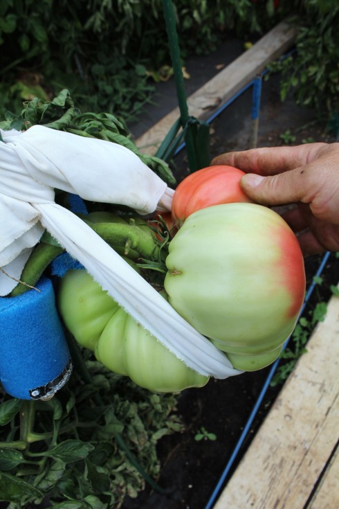 7.05 Porkchop. Is anybody else growing this seed? I haven't seen much of anyone else who has been producing from it. This will be my last entry on the early tomatoes. For Fall weigh off will be the double Megadom which is cruising right along, about the size of my fist.