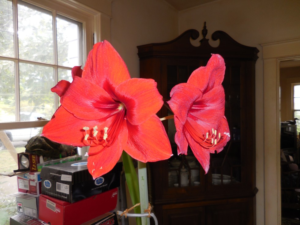 My daughter brought this Amaryllis home from her work a few years ago. I think this is the 4th time we have had it bloom.... Sure are pretty.