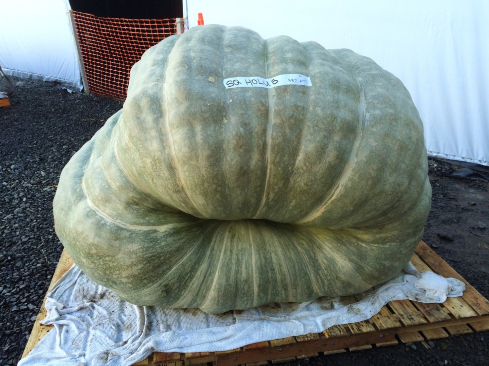 Another photo of Scott's 1844.5, this time a blossom end. Most photo's have been of the stem end. What a beautiful fruit. The surface looks like a green marble counter top. In a rare Scott Holub diary entry (bathabitat) he had his squash as 337" but in reality it was 437". So many hundreds to keep track of!