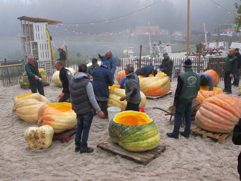 Hollowing out pumpkins for our ninth regatta.