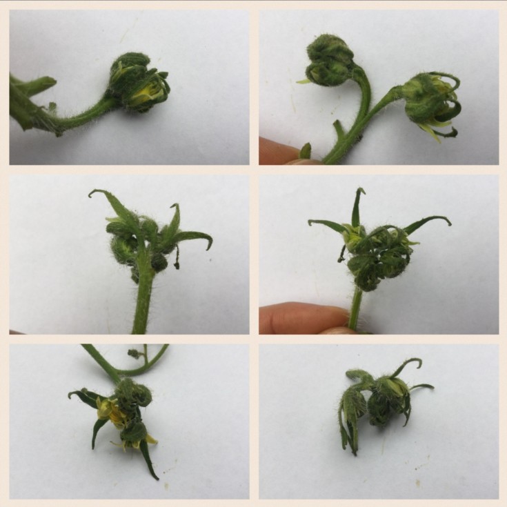 A lot of 'deformed' or not fully fused megablooms this year on nearly all plants. Not really sure what's causing this but doesn't seem like a good sign. The top left and top right are the same flower, only split apart.