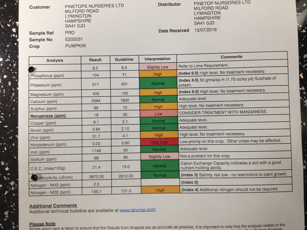 This is last years (sort of) end of season soil sample.