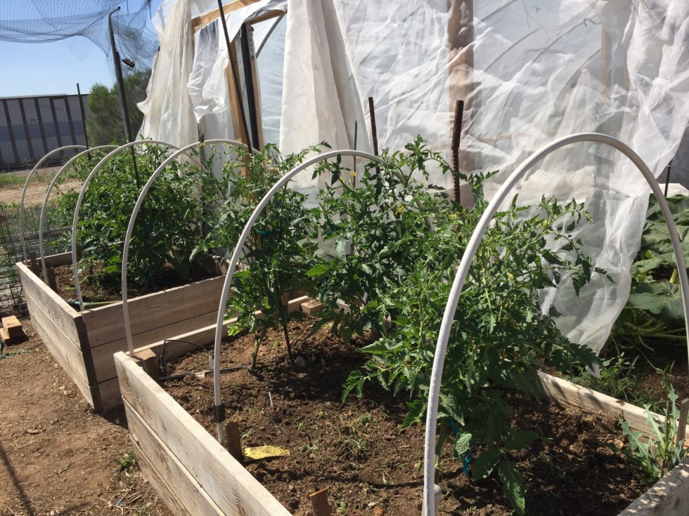 Beefsteak and Big Beef tomato plants in front of small tunnel #1 in full bloom...... fire up the bacon!.... sorry getting ahead of myself...