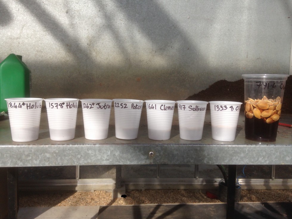 Fired the starting gun on my season today by giving the seeds a soak in maxicrop. Desired line up this year will be x2 1844* Holub, 2252 Paton, 1641 Clementz (official 150sq ft entry) then 917 Sullivan and 1333.8 Oliver as two other 150sq ft plants. The rest are back ups. Pint glass full of 791 Oliver seeds are for a seed giveaway we are doing in the garden tomorrow as part of National Gardening Week here in the UK. Aim is to get families to have a go and bring the resulting pumpkin back on our pumpkin day in October.