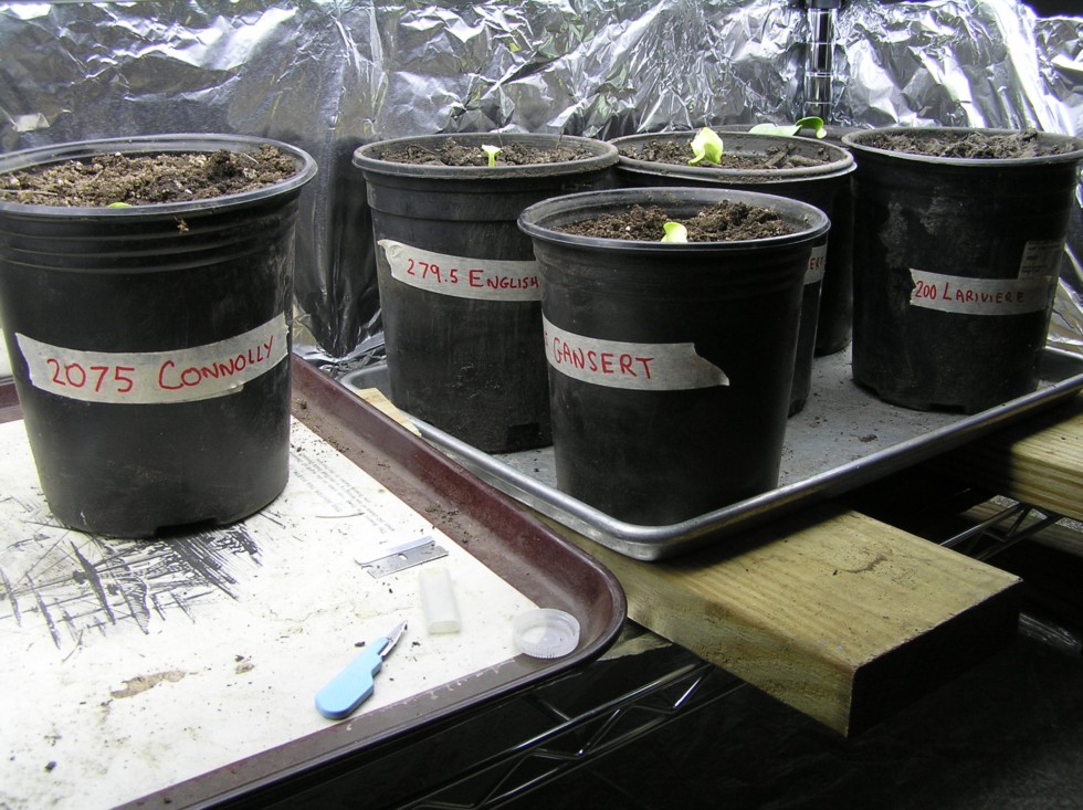 More plants are up. The 279.5 English and 200 Larivierre Bushel Gourd broke through the soil last night. Got some very Orange potential Gansert seeds up too.